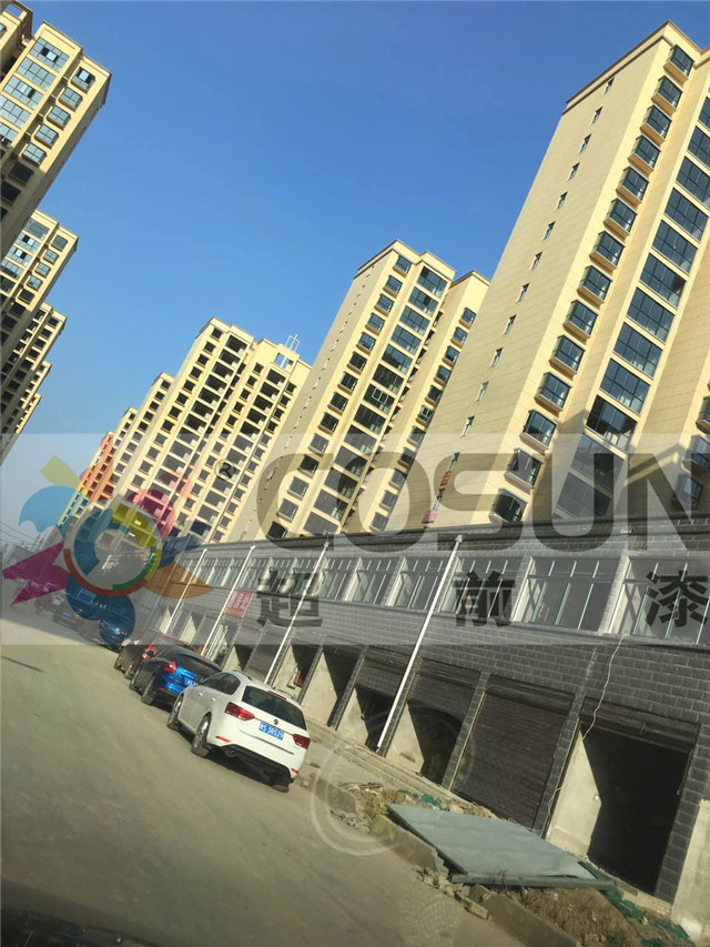超前涂料 CCTV黃金展位合作伙伴河南信陽潢川縣先峰社區(qū),工地面積30萬平方,在經(jīng)過甲方層層篩選重重考察后,超前真石漆脫穎而出,成為指定品牌,并達(dá)成長期合作,項目中外墻真石漆、質(zhì)感漆、乳膠漆為指定產(chǎn)品。