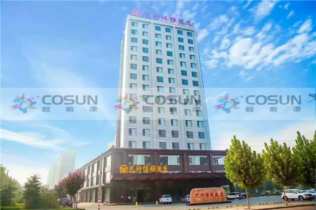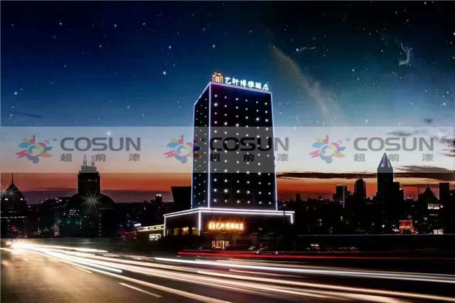 超前涂料 CCTV黃金展位合作伙伴山西臨汾侯馬藝軒酒店工地面積5000平方,超前外墻真石漆,以絕對的質(zhì)量優(yōu)勢,成為該酒店指定的多彩真石漆供應商。也是該酒店錦上添花的一次完美合作。