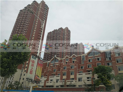 超前涂料 CCTV黃金展位合作伙伴鄭州中建七局森林上郡工地施工面積16萬平方,為了追求高端社區(qū)的需要,能從視覺上彰顯整個建筑的高雅與莊重之美,選擇了天然真石漆做為外墻專用漆。